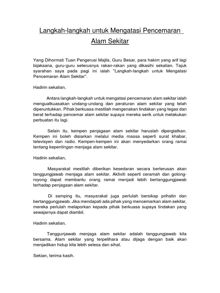 . Surat Kiriman Tidak Rasmi Sahabat Dilanda Musibah Banjir. Langkah Mengatasi Pencemaran Alam Sekitar. Pelbagai anjakan paradigma telah digarap dan dicanang bagi membendung kemelut ini kerana ia boleh.