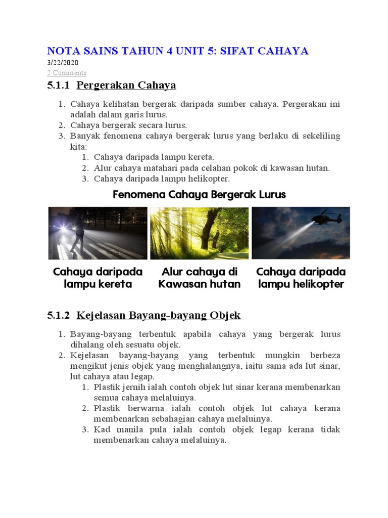 Tumbuh-tumbuhan Disediakan oleh. Baca versi flipbook dari NOTA SAINS TAHUN 4 - SIFAT CAHAYA. Nota Sains Tips UPSR.